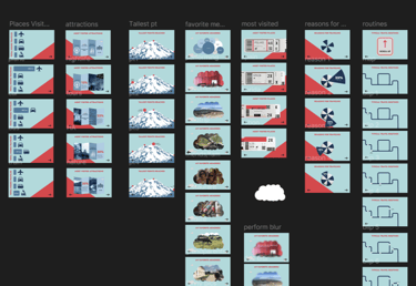 The Scope was to convey data points (i.e. Travel History) in a visually unique and stimulating way, while still portraying information in a method that viewers can interpret.
